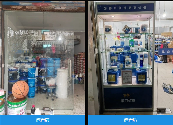 虹鷺的精益團(tuán)隊(duì)同樣以改善周的形式,從門(mén)店的5S入手,對(duì)門(mén)店的環(huán)境進(jìn)行了全面的清掃,對(duì)物品進(jìn)行全面的整理、整頓。同時(shí),從布局的角度優(yōu)化整個(gè)門(mén)店貨品進(jìn)出作業(yè),秉著“一切為工作服務(wù)”的理念,改變整個(gè)門(mén)店的經(jīng)營(yíng)形象。